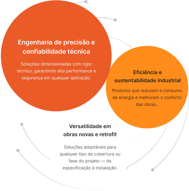 Sistemas de ventilação, iluminação natural e segurança em altura projetados para melhorar o desempenho da sua obra, reduzir custos operacionais e garantir conformidade técnica.
